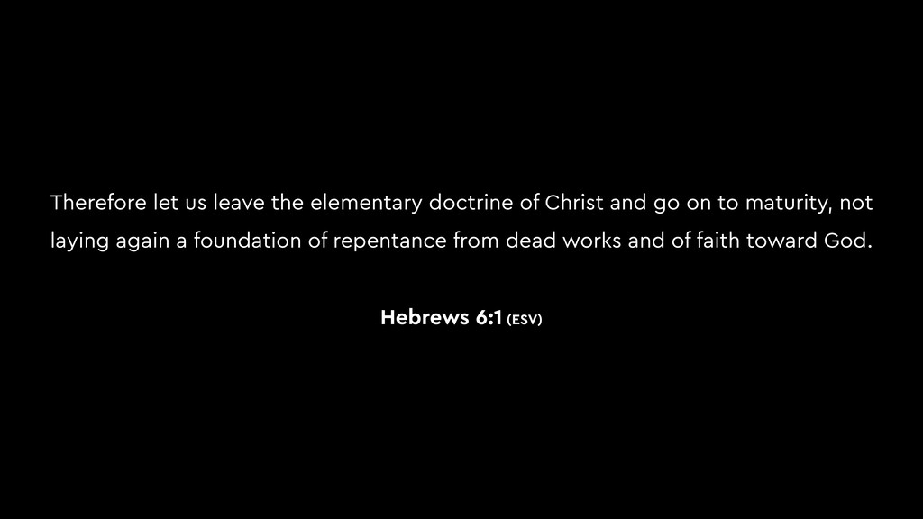 go on to maturity, not laying again a foundation of repentance from dead works and of faith toward God. Hebrews 6:1 (ESV)