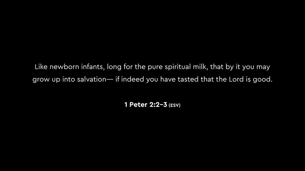 by it you may grow up into salvation— if indeed you have tasted that the Lord is good. 1 Peter 2:2–3 (ESV)