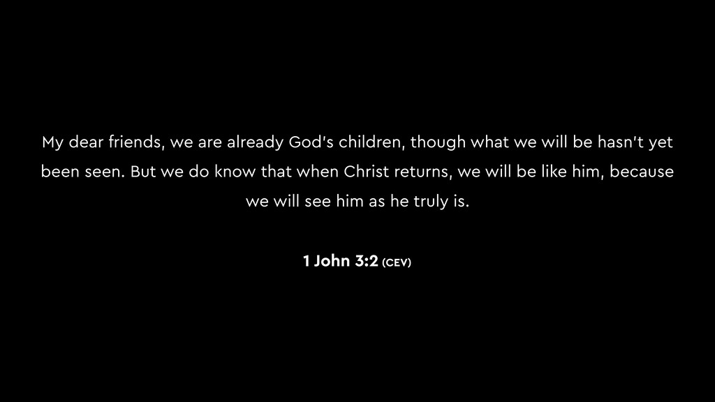 we will be hasn’t yet been seen. But we do know that when Christ returns, we will be like him, because we will see him as he truly is. 1 John 3:2 (CEV)