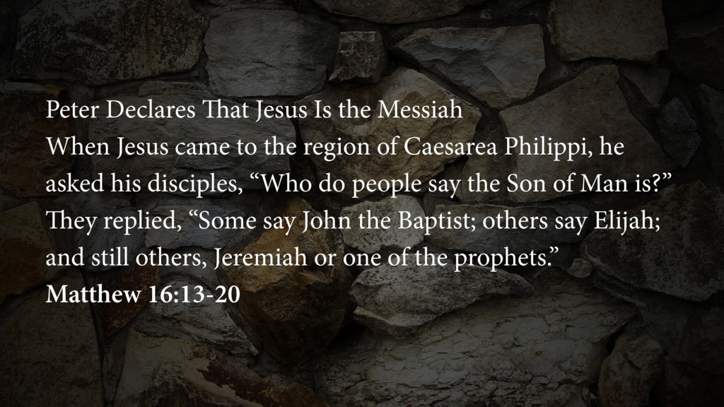 to the region of Caesarea Philippi, he asked his disciples, “Who do people say the Son of Man is?” They replied, “Some say John the Baptist; others say Elijah; and still others, Jeremiah or one of the prophets.” Matthew 16:13-20
