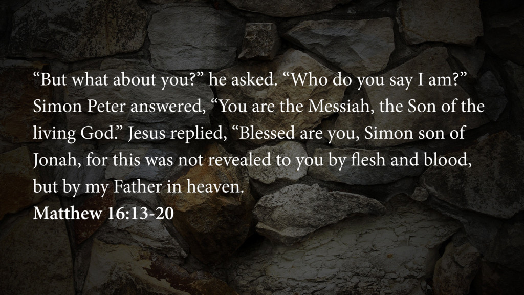 I am?” Simon Peter answered, “You are the Messiah, the Son of the living God.” Jesus replied, “Blessed are you, Simon son of Jonah, for this was not revealed to you by flesh and blood, but by my Father in heaven. Matthew 16:13-20