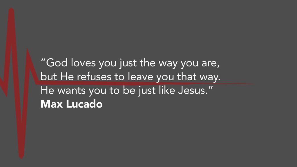 refuses to leave you that way. He wants you to be just like Jesus.” Max Lucado