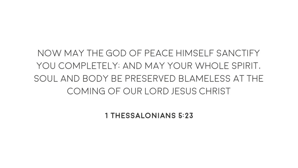 and may your whole spirit, soul and body be preserved blameless at the coming of our Lord Jesus Christ 1 Thessalonians 5:23