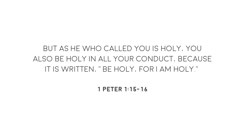 be holy in all your conduct, because it is written, “Be holy, for I am holy.” 1 peter 1:15-16