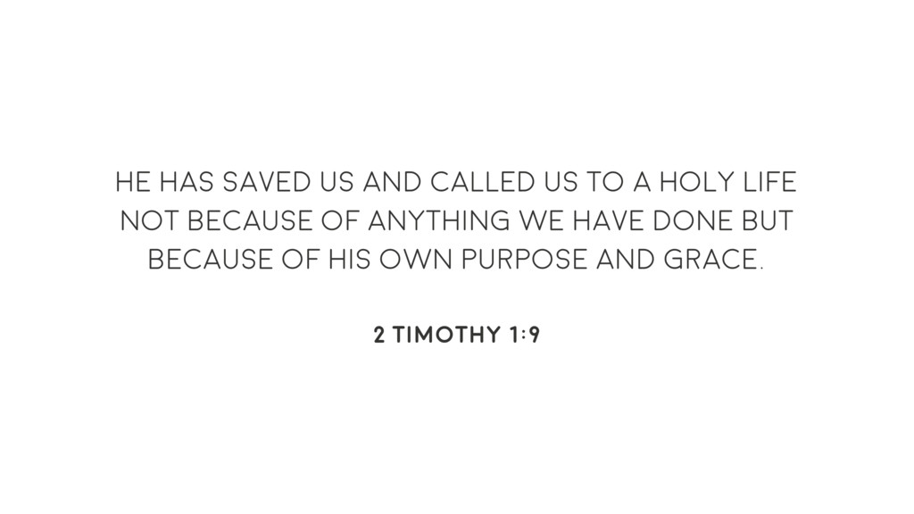 life not because of anything we have done but because of his own purpose and grace. 2 timothy 1:9