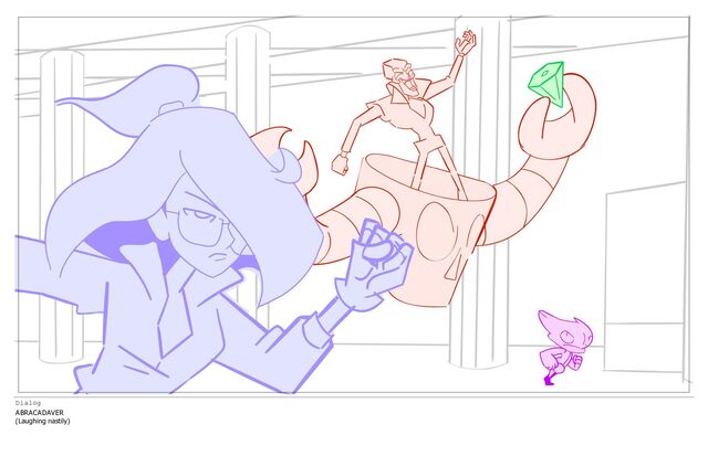 One of three scenes storyboarded for a collaborative animated pilot episode.