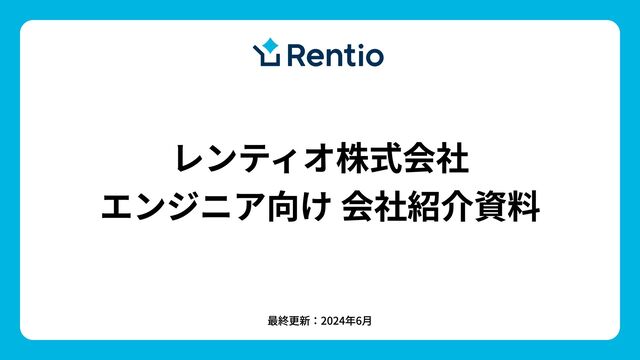 レンティオ株式会社のエンジニア向け会社案内資料(採用資料)です。
