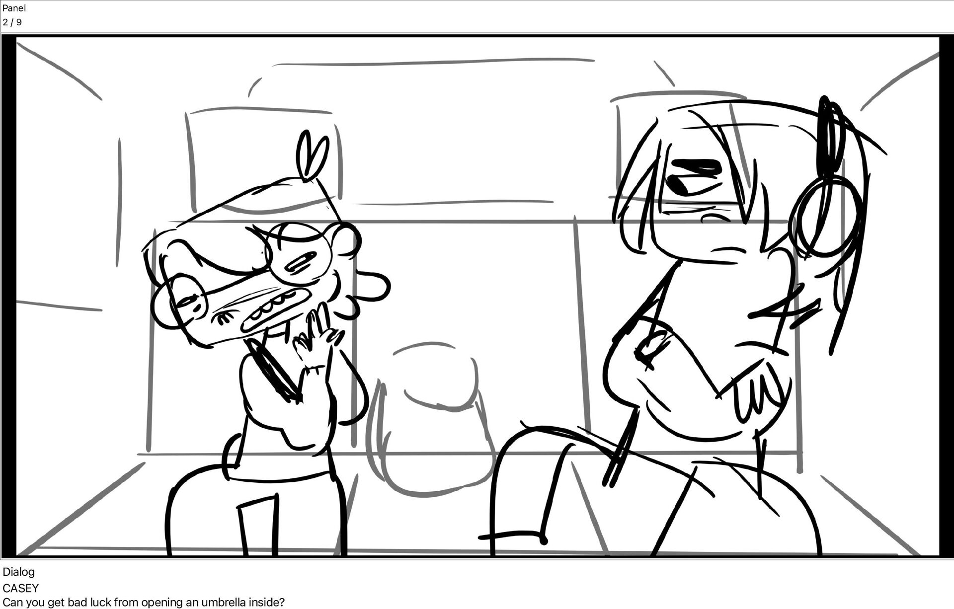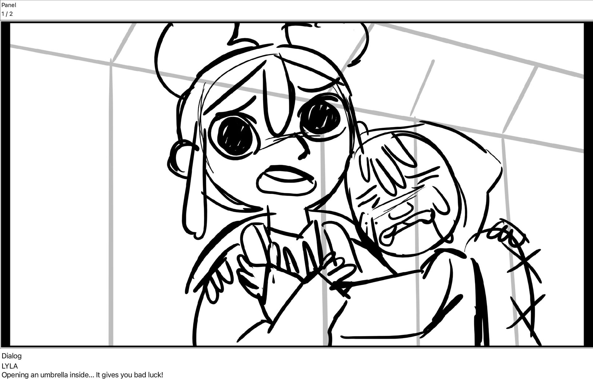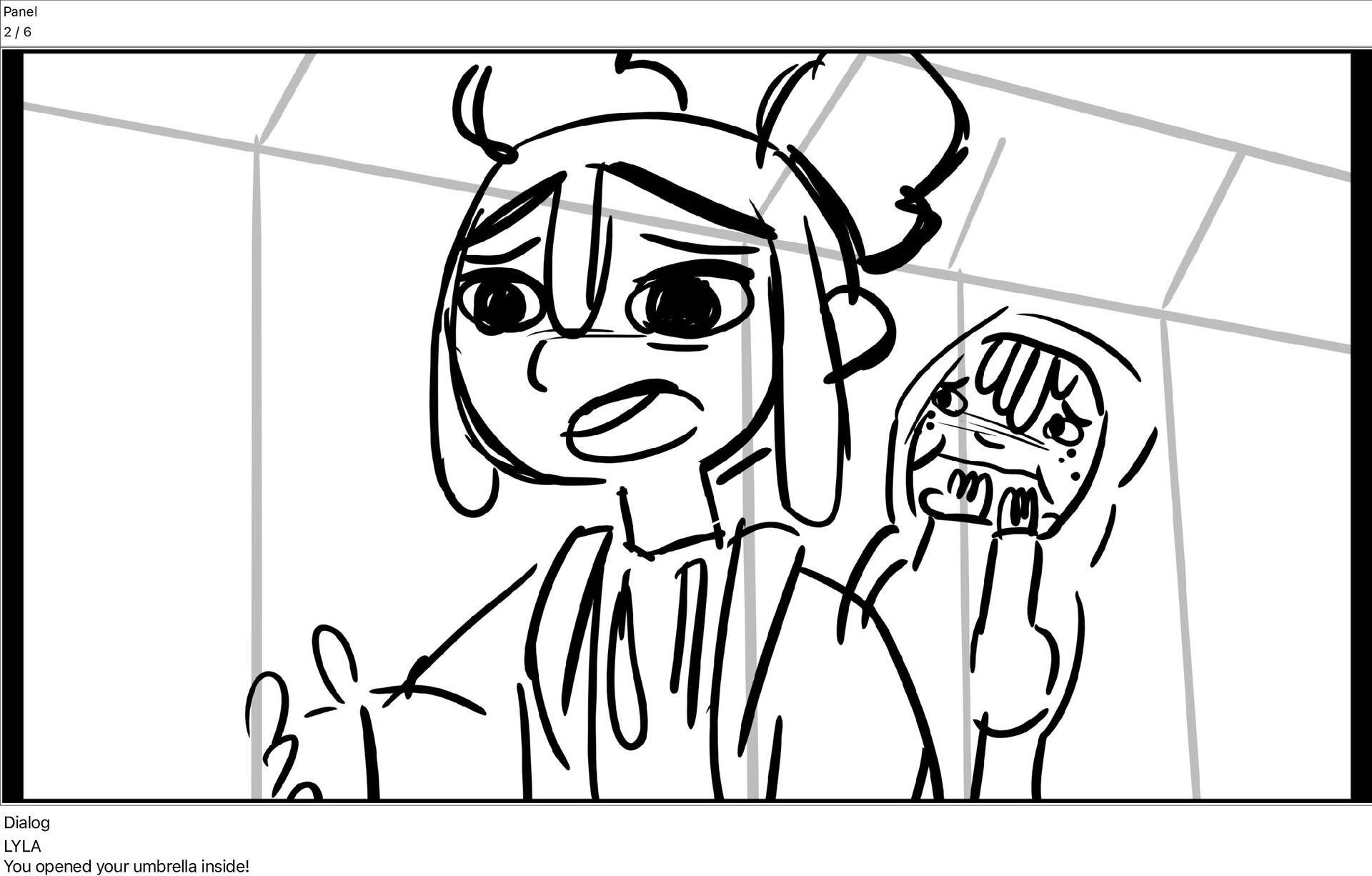 Panel 1 / 2 Dialog LYLA Opening an umbrella inside...