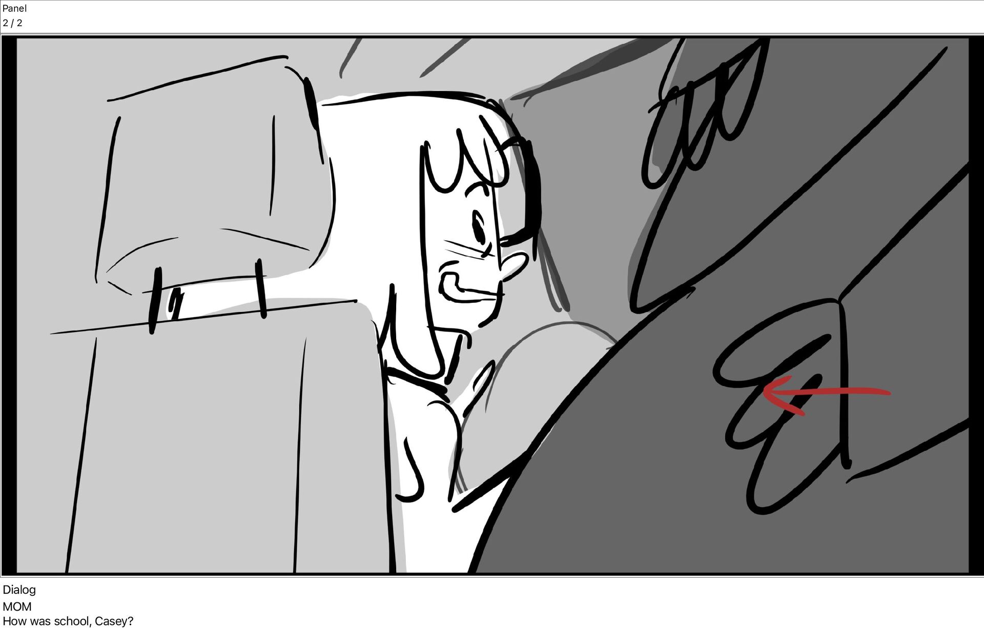 Panel 2 / 2 Dialog MOM How was school, Casey?