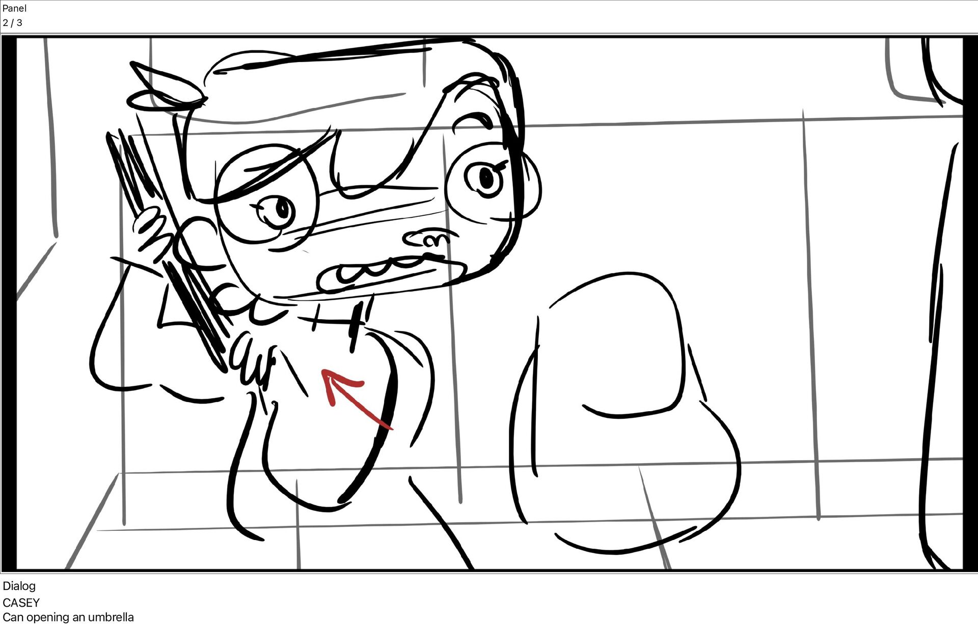 Panel 2 / 3 Dialog CASEY Can opening an umbrella