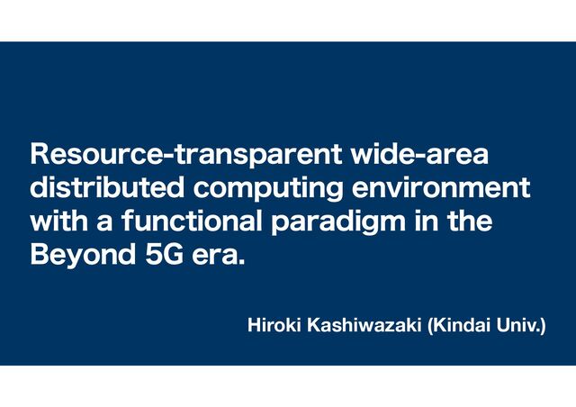 Application Application Application ᶃ Resource-transparent distributed platform ᶄ Execution environment for IoT devices ᶅ Decision making algorithm for resource distribution ᶆ IoT Applications Decision making algorithm Resource-transparent platform BEAM (Elixir processor) IoT resources Cloud: Compute for everyone. exMEC: Compute for themselves and others. End devices: Compute for themselves. Development environment: Free from minding each layer.