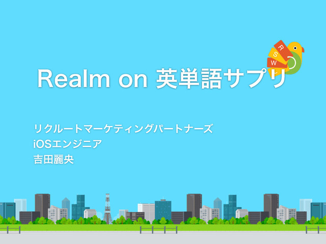 class Person: RLMObject { dynamic var name:String? dynamic var dogs:RLMArray(objectClassName: Dog.className()) } let person = Person() person.name = “Yoshida" let dog = Dog() dog.name = "John" let dog2 = Dog() dog2.name = "John2" person.dogs.addObjects([dog, dog2]) let realm = RLMRealm.defaultRealm() realm.beginWriteTransaction() realm.addObject(person) realm.commitWriteTransaction()