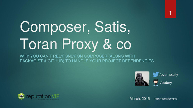alternative to Satis offering professional support as well as a web UI to manage everything and a better integration with Composer. It also provides proxying/mirroring for git repos and package zip files which makes installs faster and independent from third party systems. “ “ From composer official documentation: 15