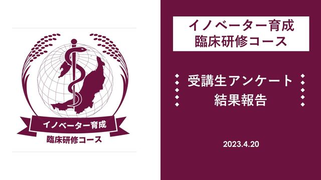 1年前と比べて、仮に、臨床現場以外の課題を見つけた場合、その課題について関心が湧き、課題を認識できるようになった 3 1年前と比べて、自分ごととして課題を認識し、医療者の視点を生かして他の関係者と連携しながら解決を図っていく自分の姿がイメージできるようになった 4 自分自身で、国,地域や身近な環境(病院内など)を変えることができると信じている 5 1年前、「将来具体的にやりたいこと」が明確に決まっていた 6 1年前と比べて、具体的にイメージが湧く未来の選択肢が増えた 7 この1年間で、研修医生活や将来のことを相談できる、信頼できる友人や先生などの「上司・部下以外の頼れる人」と出会えた 8 臨床医としての素養だけではなく、新しい人との出会い・体験を通じ、研修医生活が充実していたと思っている 9 初期研修終了後も新潟で働き続けたいと思っている 10 (複数回答)研修医プログラム全般についての質問です。現状の研修医プログラムの中で改善の余地があると考えられるものすべてを選んでください。 イノベ枠受講生のみ下記設問へ I-1 あなたはイノベ枠プログラムを受講していますか? i-2 イノベ枠参加にあたり、病院からのサポートがあった i-3 イノベ枠参加にあたり、事務局からのサポートがあった i-4 イノベ枠にかけた時間の分だけ、自身の成長を実感できている i-5 イノベ枠の内容に対して満足している i-6 その他、よかった点、改善した方が良い点など、率直にお聞かせください(このフォームは匿名で回収しています)。 i-7 また、詳しいお話を聞かせていただける方は、以下にお名前を記入いただけますと幸いです。追ってこちらからご連絡させていただきます。