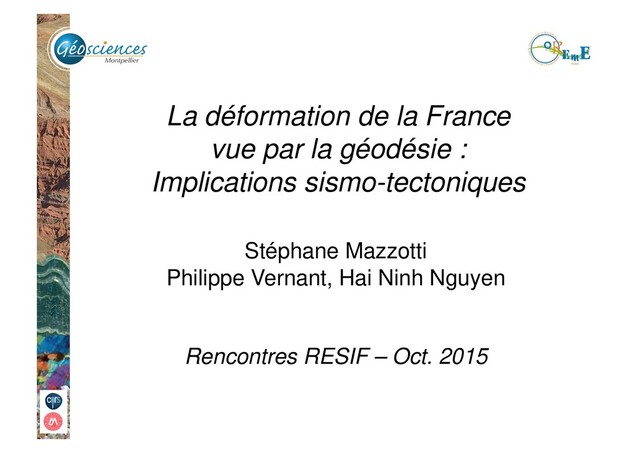 Présentation de Stéphane Mazzotti (Géosciences Montpellier) aux 2èmes Rencontres Scientifiques et Techniques Résif | 12-14 octobre 2015, La Grande Motte