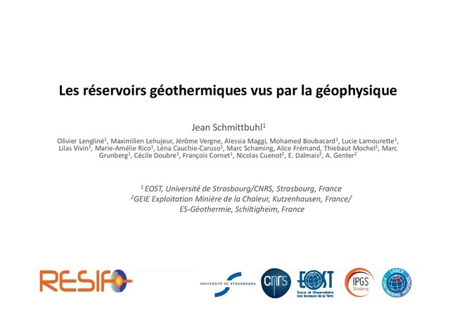 Lengliné1, Maximilien Lehujeur, Jérôme Vergne, Alessia Maggi, Mohamed Boubacard1, Lucie Lamourette1, Lilas Vivin1, Marie‐Amélie Rico1, Léna Cauchie‐Caruso1, Marc Schaming, Alice Frémand, Thiebaut Mochel1, Marc Grunberg1, Cécile Doubre1, François Cornet1, Nicolas Cuenot2, E. Dalmais2, A. Genter2 1 EOST, Université de Strasbourg/CNRS, Strasbourg, France 2GEIE Exploitation Minière de la Chaleur, Kutzenhausen, France/ ES‐Géothermie, Schiltigheim, France