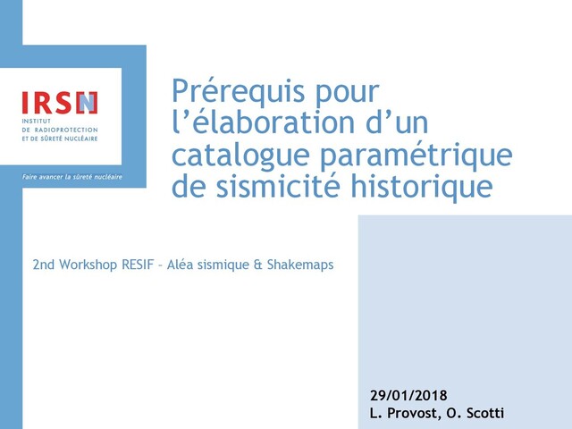 Présentation de Ludmila Provost (IRSN) au 2nd Workshop Résif "Aléa sismique & Shakemaps" | 29 - 31 janvier 2018, Montpellier