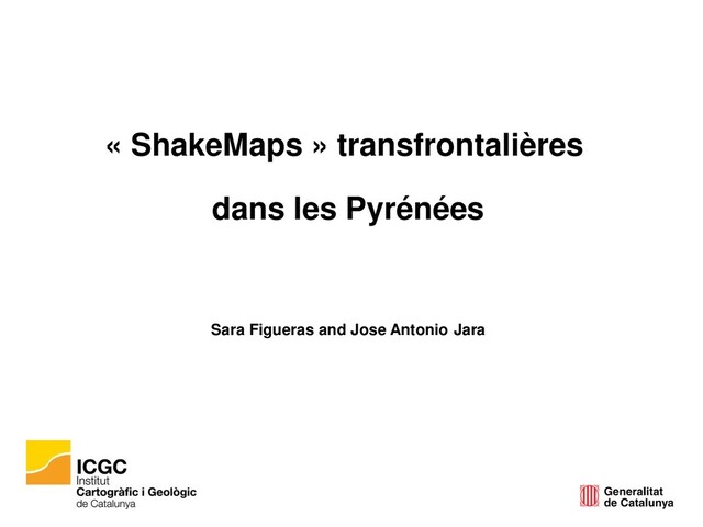Workshop RESIF – Aléa sismique & Shakemaps 29-31 January 2018, Montpellier, France Project: Interreg IVa 2007-2013 France-Spain-Andorra Participants: IGN, ICGC, BRGM, OMP, UPC, BCSF Objective of the project: “Set up a common system for earthquake data acquisition and scientific resources sharing to improve the management of seismic crisis in the Pyrenees.” Objective of the WP: Automatic computation, plotting and dissemination of an homogeneous cross-border sequence of shakemaps, during the minutes/hours after the occurrence of a M≥2.9 earthquake in the Pyrenean region