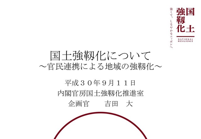 国土強靱化について ~官民連携による地域の強靱化~ 平成30年9月11日 内閣官房国土強靱化推進室 企画官 吉田 大