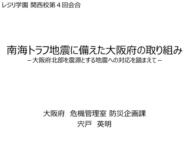 今回推計 東南海・南海地 震H19.3) 総数 344,300 179,153 24,515 液状化 16,000 71,091 2,169 揺れ 59,000 15,375 22,341 津波 8,000 31,135 - 地震火災 冬・18時・1%超過風速 260,000 61,473 5 急傾斜地 100 79 - 参考 大阪府建物総数 2,530,162 項 目 (単位:人) 条件・定義 内閣府 公表 大阪府 今回推計 東南海・南海地 震(H19.3) 総数 ≪早期避難率が低い場合≫ 9,800 133,891 87 ≪避難が迅速な場合≫ 5,900 8,806 87 揺れ [建物倒壊] 冬・18時 3,000 735 87 (内、屋内収用物移動・転倒・屋内落下物) (200) (136) (2) 津波 早期避難率低 冬・18時 4,500 132,967 - (内、堤防沈下等) - (18,976) - (内、津波) - (113,991) - 避難迅速化 冬・18時 - 7,882 - (内、堤防沈下等) - (7,882) - (内、津波) - 0 - 地震火災 冬・18時・1%超過風速 2,100 176 0 急傾斜地 冬・18時 10 2 - ブロック塀、自動販売機等の転倒、屋外落下物 冬・18時 300 11 - 参考 大阪府 夜間人口 8,865,245 大阪府 昼間人口 9,280,560 注)ビルや集合住宅は、1棟で計算。 南海トラフ巨大地震による大阪府内の被害概要