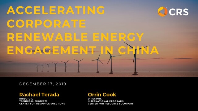 Accompanying the release of the report "Accelerating Corporate Renewable Energy Engagement in China," CRS reviewed the key findings and summarized the report’s recommendations. It assessed the current procurement options in the Chinese voluntary renewable energy market and presented how each option interacts with China’s renewable energy policies. It concluded with recommendations for how the market might be strengthened to boost voluntary procurement of renewable energy.