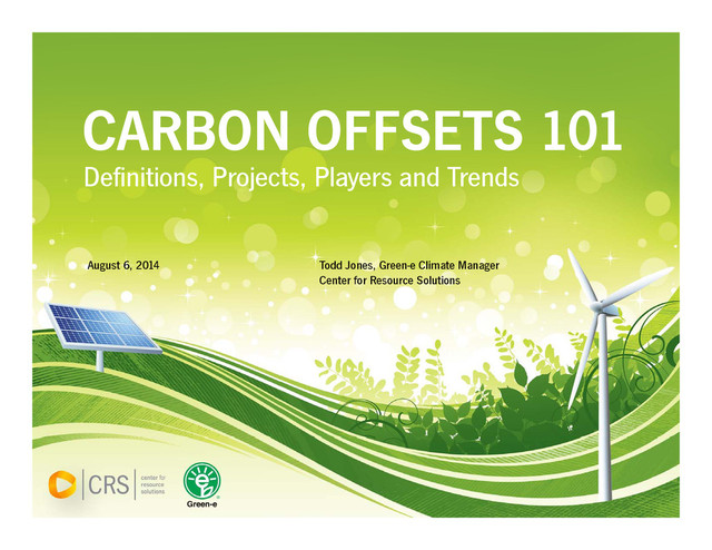 This webinar is designed for those who want a basic overview of the international over-the-counter (voluntary) carbon market, with special emphasis on offset project types and how offsetting is used to reduce the environmental impact of individual and organizational activities. Originally aired Wednesday, August 6, 2014 at 10:00 am PT with Todd Jones, Green-e Climate Manager