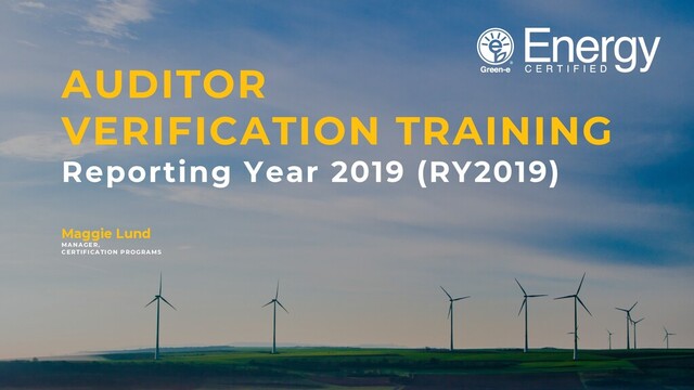 Green-e Energy Auditor Verification Training, Reporting Year 2019