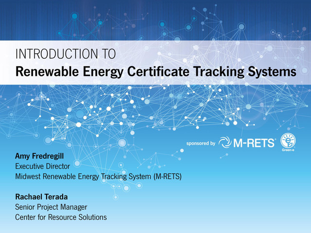 Renewable energy markets in the U.S. increasingly rely upon tracking systems—regional electronic databases that allow stakeholders to manage their portfolio of renewable energy certificates (RECs) that confer environmental benefits and act as proof of generation. Unsung and largely unknown outside the industry, REC tracking systems in the U.S. are crucial to our functioning marketplace. Join Amy Fredregill, Executive Director of the Midwest Renewable Energy Tracking System (M-RETS), and CRS Senior Project Manager Rachael Terada in an overview of how tracking systems work, what's in a REC, and an inside look at M-RETS.
