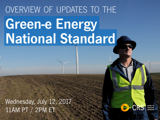 This webinar is relevant to anyone participating in Green-e Energy, including generators, sellers, electricity service providers, brokers, and large purchasers. There will be an opportunity for Q&A at the end of the presentation.