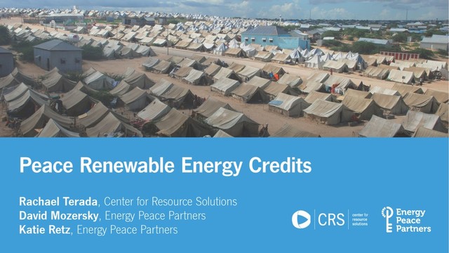 Join Energy Peace Partners and Center for Resource Solutions in a webinar introducing the Peace Renewable Energy Credit (PREC), a market-based instrument that can help finance new clean energy projects in fragile regions, including in peace and humanitarian missions.