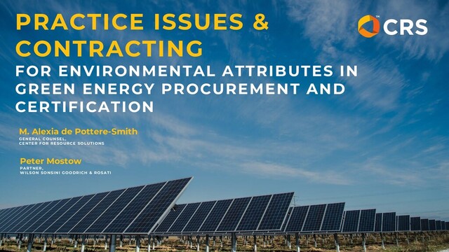 Peter Mostow, a partner at Wilson Sonsini Goodrich & Rosati (WSGR) joins M. Alexia de Pottere-Smith, General Counsel at Bay Area energy NGO Center for Resource Solutions in discussing the emerging themes around contracting for—and certification of—energy procurements in today’s volatile market, while introducing new best practices around resource eligibility.