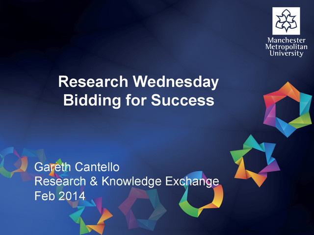 Use Research Professional: http://www.researchprofessional.com/ • Monthly Research Funding Opportunities Newsletter – Expression of Interest • www.researchfundingtoolkit.org Book and website. Very detailed guidance on wri;ng techniques (e.g. Assert – Jus;fy) • Sign up to our Blog: http://mmuresearchblog.wordpress.com/