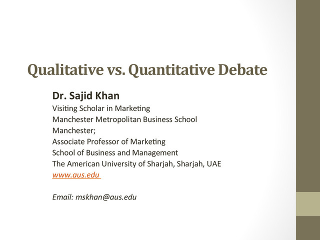 Scholar in Marke$ng Manchester Metropolitan Business School Manchester; Associate Professor of Marke$ng School of Business and Management The American University of Sharjah, Sharjah, UAE www.aus.edu Email: [email protected]