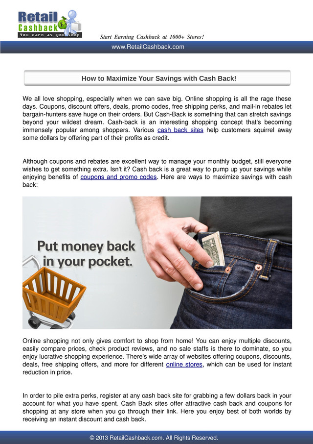 Cash back is a great way to pump up your savings while enjoying benefits of coupons and promo codes. Here are the ways to maximize savings with cash back.