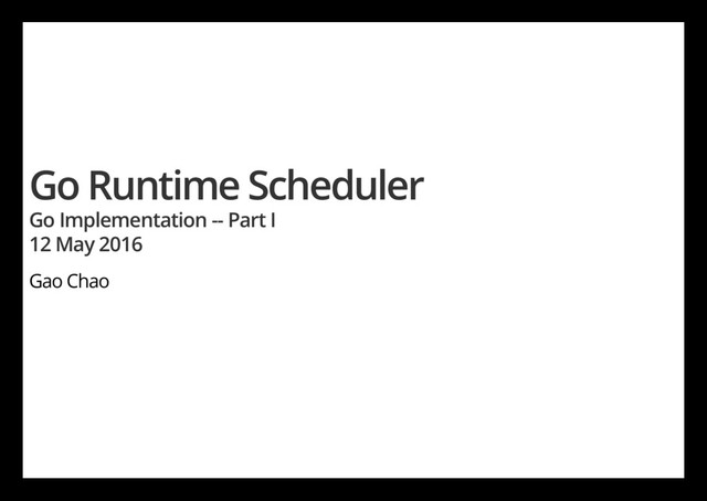 centralized state. The mutex protects all goroutine-related operations (creation, completion, rescheduling, etc). 2. Goroutine (G) hand-o (G.nextg). Worker threads (M's) frequently hand-o runnable goroutines between each other, this may lead to increased latencies and additional overheads. Every M must be able to execute any runnable G, in particular the M that just created the G. 3. Per-M memory cache (M.mcache). Memory cache and other caches (stack alloc) are associated with all M's, while they need to be associated only with M's running Go code (an M blocked inside of syscall does not need mcache). A ratio between M's running Go code and all M's can be as high as 1:100. This leads to excessive resource consumption (each MCache can suck up up to 2M) and poor data locality. 4. Aggressive thread blocking/unblocking. In presence of syscalls worker threads are frequently blocked and unblocked. This adds a lot of overhead.