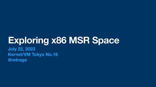 This presentation was given at Kernel/VM Tokyo No.16. In this talk, I first introduced MSR basics, and how to explore the MSR space. I compared two different CPU MSR spaces in two settings by visualizing the spaces.