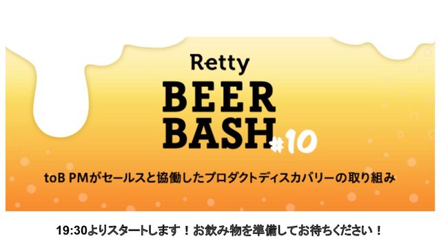 4 toB PMがセールスと協働したプロダクトディスカ バリーの取り組み ・Retty beer bashとは・・・ ・乾杯しましょう! ・チャット欄にコメントや質問お待ちしてます^^