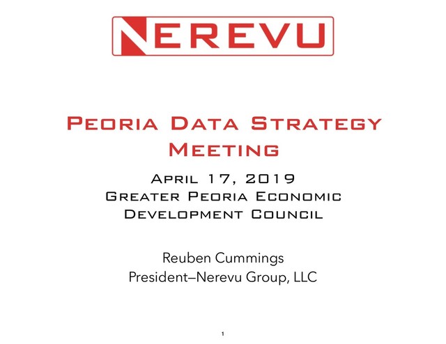 Peoria Data Strategy Meeting April 17, 2019 Greater Peoria Economic