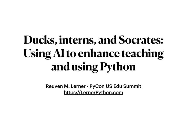 https://LernerPython.com • The Socratic method: Ask your students directed questions, forcing them to think and develop their thinking • The Reverse Socratic method: Ask the LLM directed questions to research or learn a subject • Asking the questions crystallizes your thinking • Many questions (and answers) reduce the chance of LLM errors • Argue, summarize, and develop with prompts like: • Counter-examples (“but what about…”) • Summaries (“So what you’re saying is…”) • Comparisons (“So X differs from Y by …”) • It’s totally OK (crucial, even!) to say, “I don’t understand.” Reverse Socratic method 21