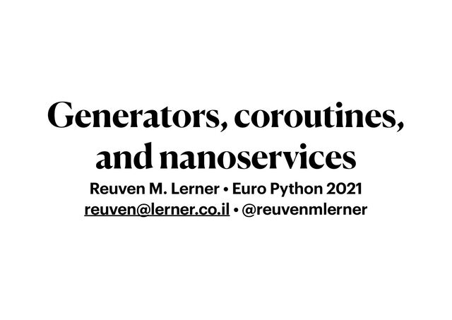 In this talk, I’ll tell you why coroutines can be useful, and how thinking about them as in-process “nanoservices” puts us in the right frame of mind to determine when they would and wouldn’t be appropriate.