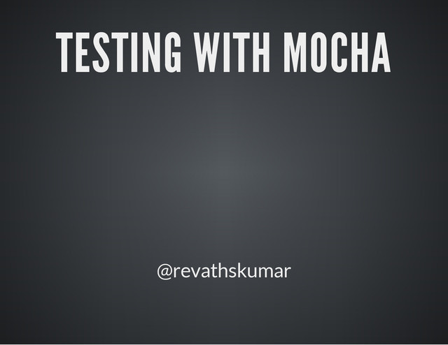 t o r . j s C a l c u l a t o r = { a d d : f u n c t i o n ( a , b ) { r e t u r n a + b ; } } m o d u l e . e x p o r t s = C a l c u l a t o r / / t e s t . j s v a r C a l c = r e q u i r e ( " . / c a l c u l a t o r " ) ; v a r a s s e r t = r e q u i r e ( " c h a i " ) . a s s e r t s u i t e ( " a d d " , f u n c t i o n ( ) { t e s t ( " t w o p o s i t i v e " , f u n c t i o n ( ) { a s s e r t ( C a l c . a d d ( 1 , 3 ) , 4 ) ; } ) ; t e s t ( " p o s i t i v e a n d n e g a i v e " , f u n c t i o n ( ) { a s s e r t ( C a l c . a d d ( - 5 , 4 ) , 1 ) ; } ) } ) ;
