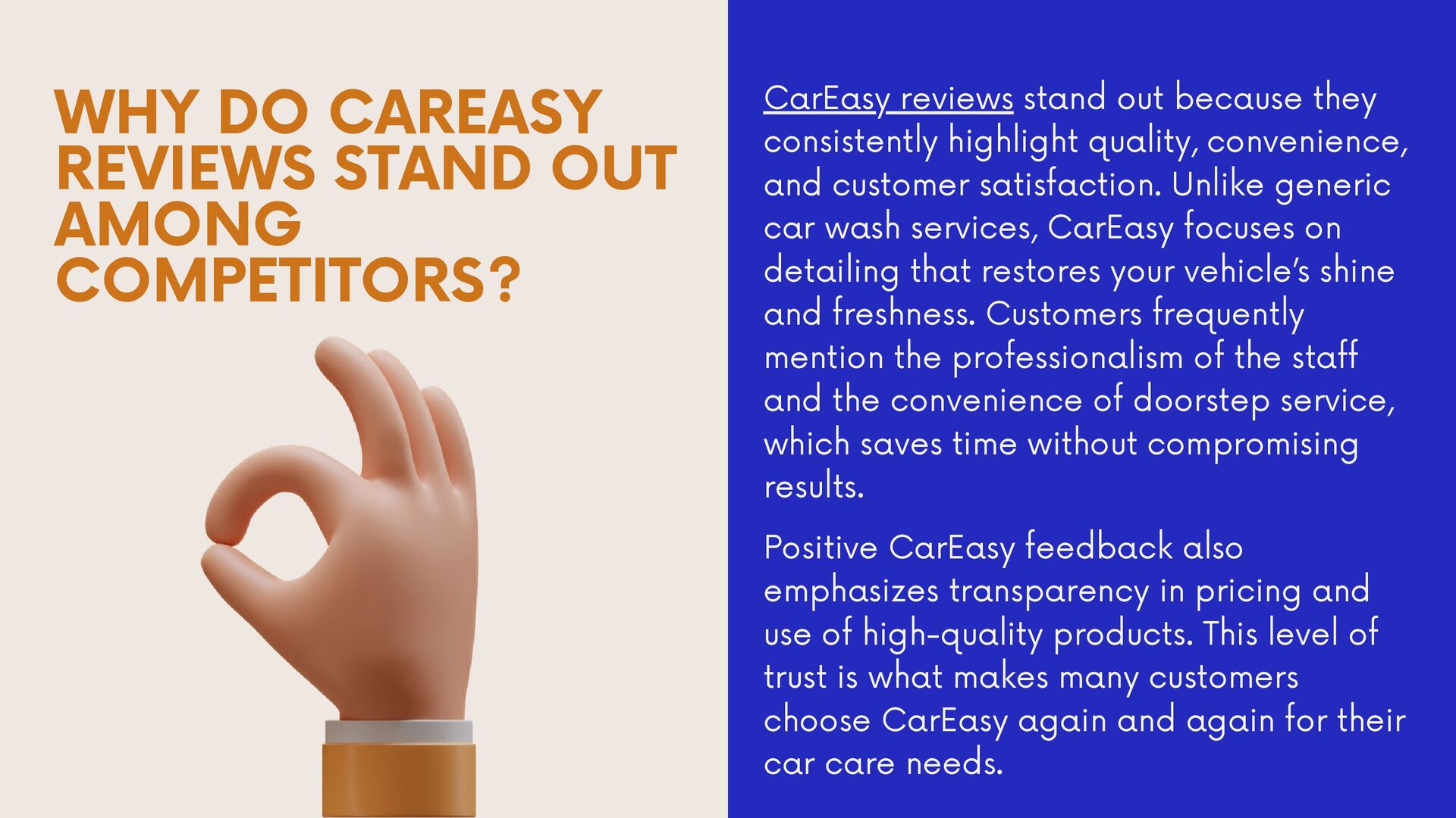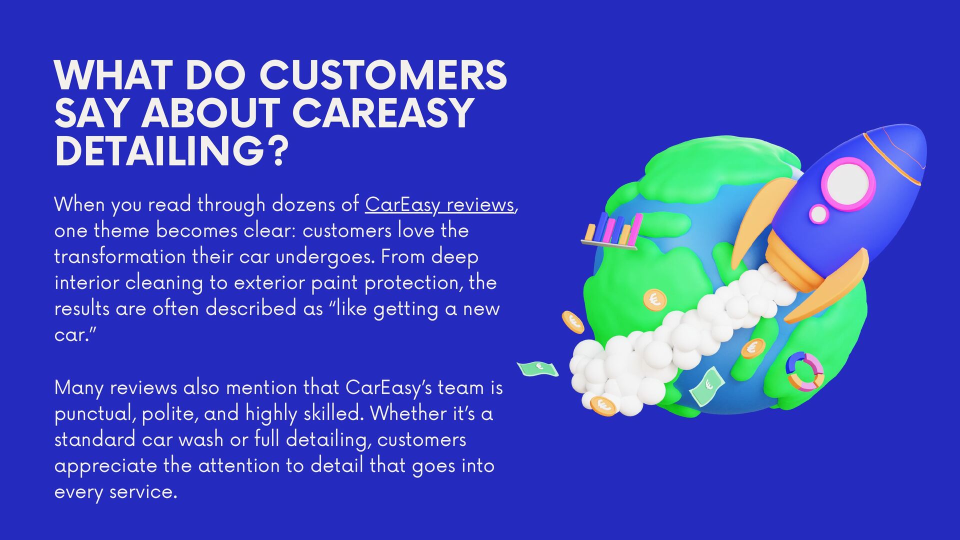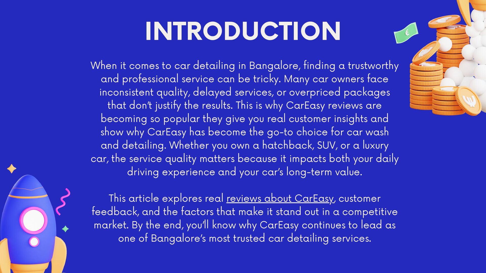 CarEasy reviews clearly prove that it is one of the best car detailing services in Bangalore. Customers consistently praise the convenience, professionalism, and value for money that the service provides. Whether you need a quick car wash or a full detailing package, CarEasy ensures your car looks, feels, and smells like new.