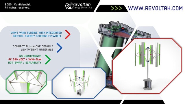 VERTICAL-AXIS WIND TURBINE, INERTIAL ENERGY STORAGE FLYWHEEL / +SOLAR PANELS, FOLDABLES / COLLAPSIBLE, CONNECTED / SMART