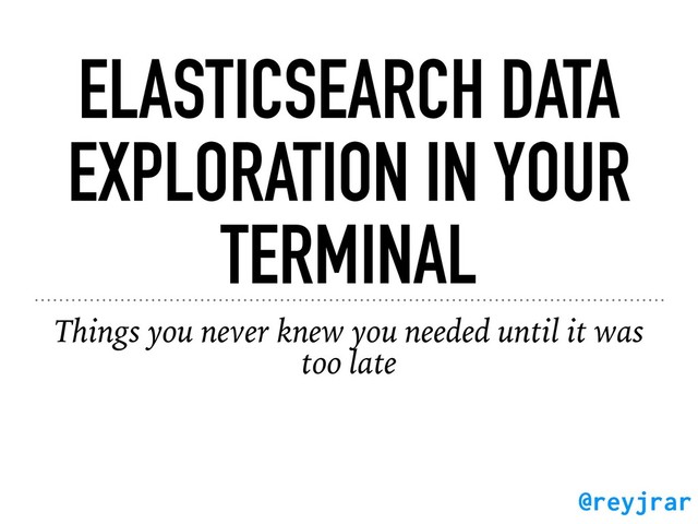 You've seen the pretty graphs. Visuals are great for signaling there is a problem somewhere in your system. How do you, a command line guru, go from pretty graphs to root cause analysis? Most likely you'll be reaching for paradigms from the command line: composability and a flexible, compact syntax to ask your questions. I'd like to talk more about integrating ElasticSearch-based dashboards back to the command line workflows I love.