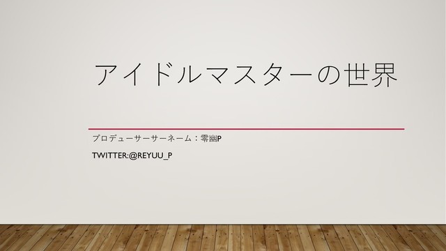 去年の4月、所属サークルである「漫画・アニメーション研究部」で発表をした「THE IDOLM@STERの世界」というスライドです。 まだまだ未熟さあふれるスライドですが、優しい心で見て頂ければ幸いです。