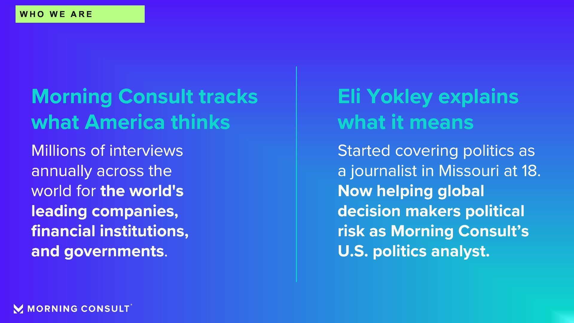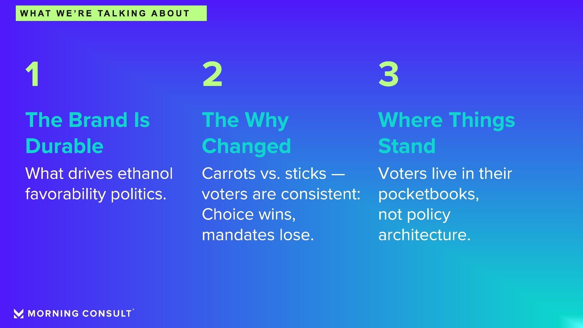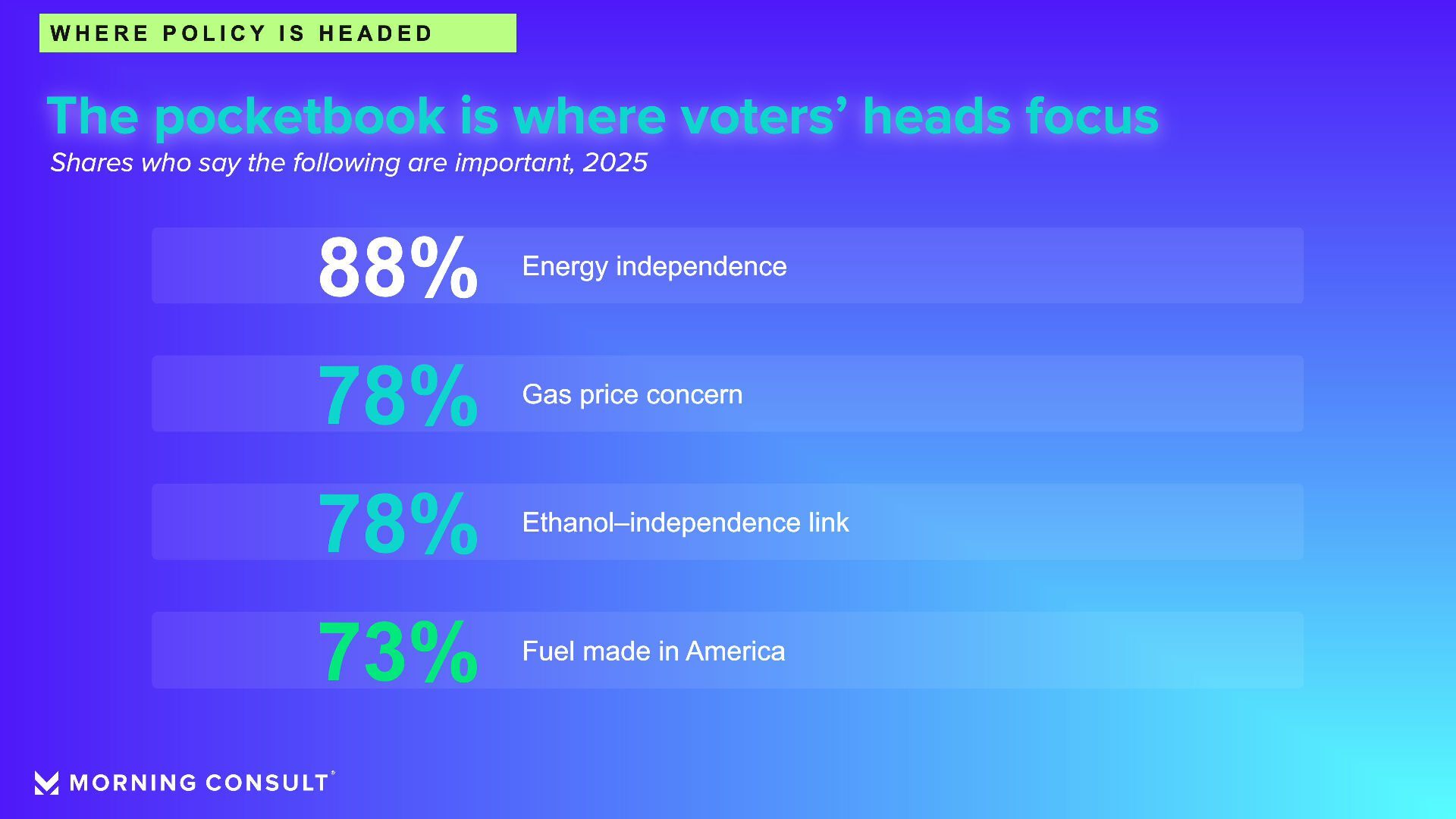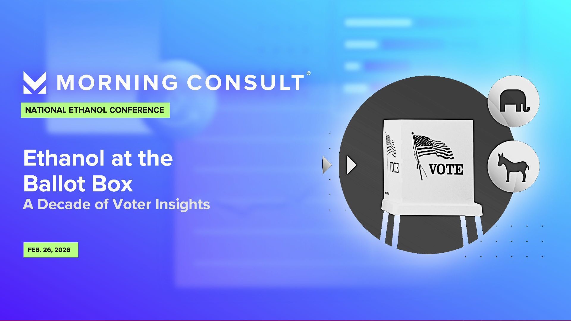 Presenter: Eli Yokley, U.S. Politics Analyst, Morning Consult Timing: Thursday, Feb. 26, 2026 (9:50 am - 10:15 am) Session: Ethanol at the Ballot Box: A Decade of Voter Insights