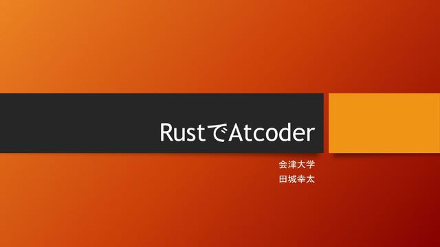 アジェンダ • 競技プログラミング・Atcoderってなぁに? • Rustってなぁに? • Why Rust? • Rustの勉強の仕方