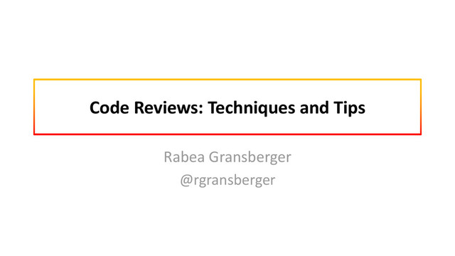 Parameters and Statistical Models, and Underlying Behaviours and Mechanisms, Rigby, Dissertation, 2011 2. Convergent Contemporary Software Peer Review Practices, Rigby, 2013 3. Software Quality in 2002: A survey of the state of the art, Capers Jones, 2002 4. IEEE Standard for Software Reviews and Audits, IEEE Std 1028™-2008 5. Modernizing The Peer Code Review Process, KLOCWORK, White Paper, 2010 6. Code Reviews should be the universal rule of serious Software Development, Chhabra, Blog, 2012 7. How to hold a more effective code review, Stellman & Green, Blog, 2008 8. Code Review in Four Steps, Hayes, Blog, 2014 9. 11 proven practices for more effective, efficient peer code review, Cohen, 2011 10. Best Kept Secrets of Peer Code Review, Cohen, Smart Bear Inc., 2006 11. Don’t waste time on Code Reviews, Bird, Blog, 2014 12. Code Review Defects, Mäntylä & Lassenius, 2007 13. The Ten Commandments of Egoless Programming, Atwood, Blog, 2006 14. Improve Quality and Morale: Tips for Managing the Social Effects of Code Review, Smartbear, 2011 15. Code Reviews in Practice: Characteristics and Influencing Factors, Baum, 2015, (publication pending) 10.09.2015 JavaZone / Code Reviews (Rabea Gransberger @rgransberger)