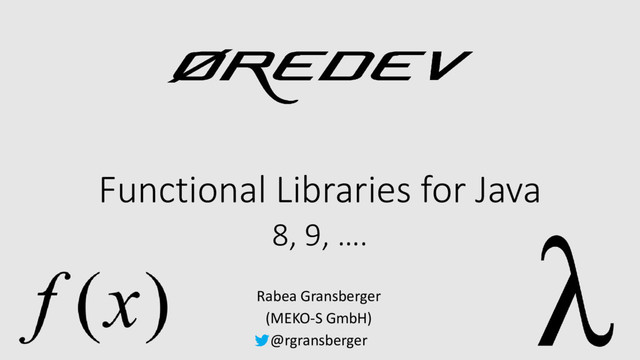 (for debugging) • intersperse: Insert element between existing [a, b, c], 0 => [a,0,b,0,c] • leftOuterJoin: Take all from left, join with each right, by join criteria [a, b, c][1, 2] => [(a,1),(a,2),(b,1),(b,2),(c,null)] • rightOuterJoin: Take all from right, join with each left, by join criteria [a, b][1, 2, 3] => [(a,1),(b,1),(a,2),(b,2),(null,3)] • innerJoin: join until one of the Seq ends, by join criteria [a, b][1, 2, 3] => [(a,1),(b,1),(a,2),(b,2)] 08.11.2017 Øredev / Functional Java (Rabea Gransberger @rgransberger)