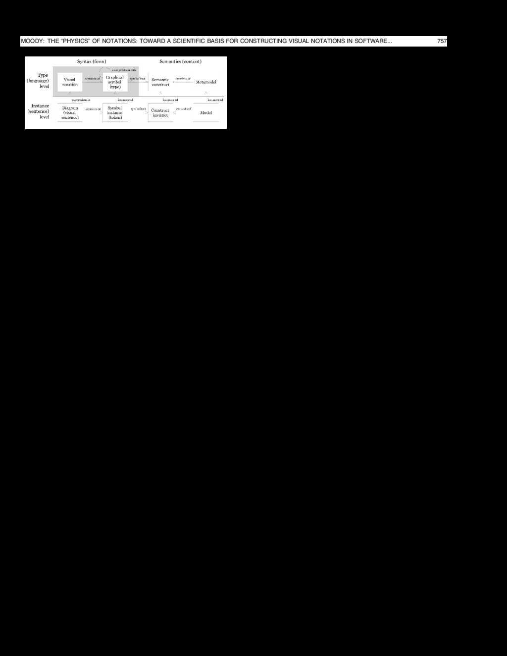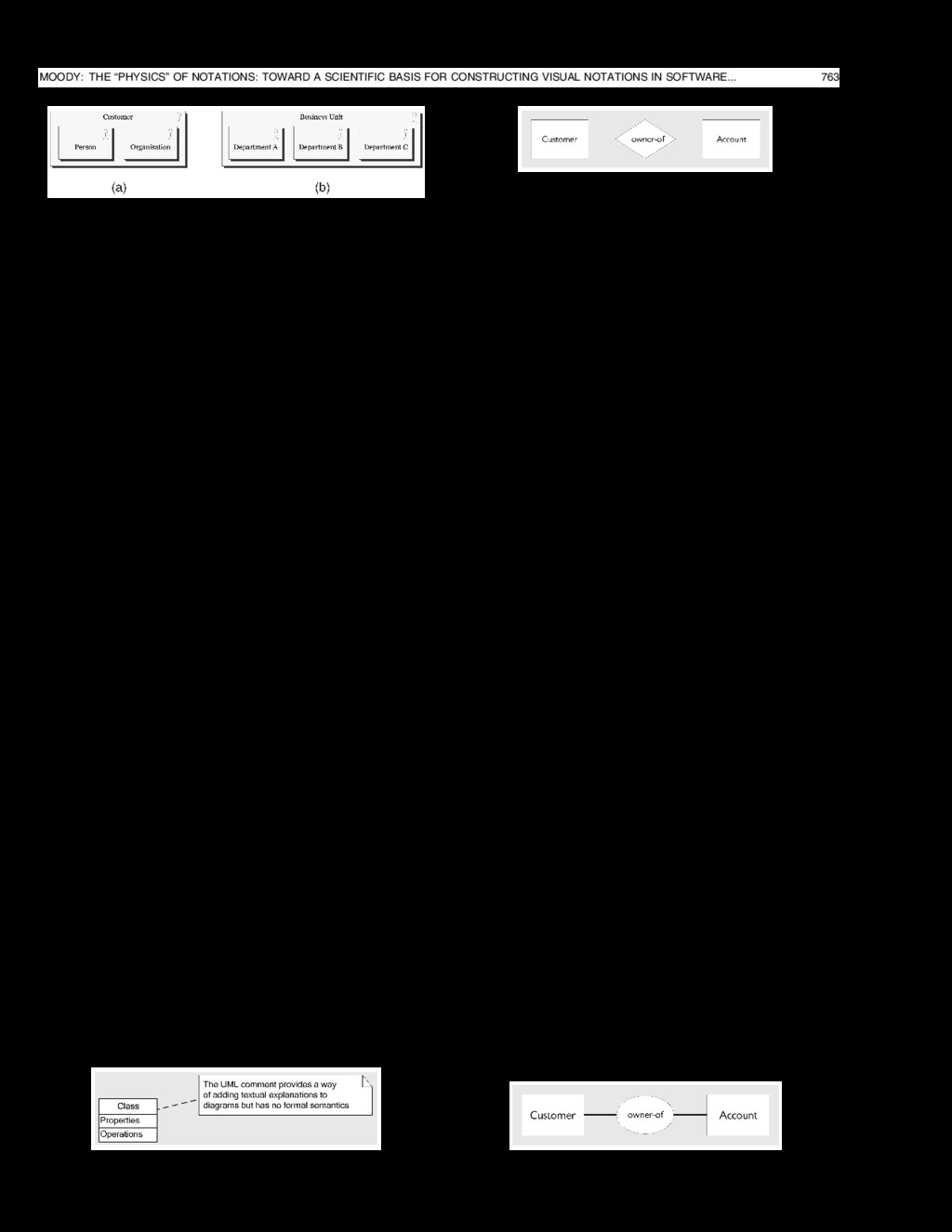 Harvard Univ. Press, 1970. [2] D.E. Avison and G. Fitzgerald, Information Systems Development: Methodologies, Techniques and Tools, third ed. Blackwell Scientific, 2003. [3] C.W. Bachman, “Data Structure Diagrams,” DataBase: A Quarterly Newsletter of SIGBDP, vol. 1, no. 2, 1969. [4] C.Y. Baldwin and K.B. Clark, “Design Rules Volume 1: The Power of Modularity. MIT Press, 2000. [5] M. Bar and M. Neta, “Humans Prefer Curved Visual Objects,” Psychological Science, vol. 17, no. 8, pp. 645-648, 2006. [6] R. Barker, CASE*Method: Entity Relationship Modelling. Addison- Wesley Professional, 1990. [7] D. Batra, J.A. Hoffer, and R.P. Bostrom, “Comparing Representa- tions with Relational and EER Models,” Comm. ACM, vol. 33, no. 2, pp. 126-139, 1990. [8] J. Bertin, Semiology of Graphics: Diagrams, Networks, Maps. Univ. of Wisconsin Press, 1983. [9] I. Biederman, “Recognition-by-Components: A Theory of Human Image Understanding,” Psychological Rev., vol. 94, no. 2, pp. 115- 147, 1987. [10] A.F. Blackwell, Cognitive Dimensions of Notations Resource Site, http://www.cl.cam.ac.uk/~afb21/CognitiveDimensions/index. html, 2009. [11] A.F. Blackwell and T.R.G. Green, “Notational Systems—The Cognitive Dimensions of Notations Framework,” HCI Models, Theories, and Frameworks: Towards a Multi-Disciplinary Science, J.M. Carroll, ed., pp. 328-365, Morgan Kaufmann, 2003. [12] J. Blankenship and D.F. Dansereau, “The Effect of Animated Node-Link Displays on Information Recall,” J. Experimental Education, vol. 68, no. 4, pp. 293-308, 2000. [13] F. Bodart, A. Patel, M. Sim, and R. Weber, “Should the Optional Property Construct Be Used in Conceptual Modelling: A Theory and Three Empirical Tests,” Information Systems Research, vol. 12, no. 4, pp. 384-405, 2001. [14] G. Booch, Object-Oriented Analysis and Design with Applications, second ed. Benjamin Cummings Publishing, 1994. [15] C. Britton and S. Jones, “The Untrained Eye: How Languages for Software Specification Support Understanding by Untrained Users,” Human Computer Interaction, vol. 14, pp. 191-244, 1999. [16] S.K. Card and J. Mackinlay, “The Structure of the Information Visualization Design Space,” Proc. 1997 IEEE Symp. Information Visualization, 1997. [17] P.B. Checkland and J. Scholes, Soft Systems Methodology in Action. Wiley, 1990. [18] P.P. Chen, “The Entity Relationship Model: Towards An Integrated View of Data,” ACM Trans. Database Systems, vol. 1, no. 1, pp. 9-36, 1976. [19] P.C.H. Cheng, “Why Diagrams Are (Sometimes) Six Times Easier than Words: Benefits beyond Locational Indexing,” Proc. Int’l Conf. Theory and Application of Diagrams, 2004. [20] P.C.-H. Cheng and R. Barone, “Representing Complex Problems: A Representational Epistemic Approach,” Learning to Solve Complex Scientific Problems, D.H. Jonassen, ed., pp. 97-130, Lawrence Erlbaum Assoc., 2007. [21] P.C.-H. Cheng, R.K. Lowe, and M. Scaife, “Cognitive Science Approaches to Understanding Diagrammatic Representations,” Artificial Intelligence Rev., vol. 15, nos. 1/2, pp. 79-94, 2001. [22] W. Citrin, “Strategic Directions in Visual Languages Research,” ACM Computing Surveys, vol. 24, no. 4, 1996. [23] G. Costagliola, A. Delucia, S. Orefice, and G. Polese, “A Classification Framework to Support the Design of Visual Languages,” J. Visual Languages and Computing, vol. 13, pp. 573- 600, 2002. [24] G. Costagliola, V. Deufemia, and G. Polese, “A Framework for Modeling and Implementing Visual Notations with Applications to Software Engineering,” ACM Trans. Software Eng. and Methodol- ogy, vol. 13, no. 4, pp. 431-487, 2004. [25] J. Dagit, J. Lawrance, C. Neumann, M. Burnett, R. Metoyer, and S. Adams, “Using Cognitive Dimensions: Advice from the Trenches,” J. Visual Languages and Computing, vol. 17, pp. 302- 327, 2006. [26] I. Davies, P. Green, M. Rosemann, M. Indulska, and S. Gallo, “How Do Practitioners Use Conceptual Modelling in Practice?” Data and Knowledge Eng., vol. 58, pp. 358-380, 2006. [27] T. De Marco, Structured Analysis and System Specification. Yourdon Press, 1978. [28] E.W. Dijkstra, “The Humble Programmer (1972 Turing Award Lecture),” Comm. ACM, vol. 15, no. 10, pp. 859-866, 1972. [29] C. Ding and P. Meteti, “A Framework for the Automated Drawing of Data Structure Diagrams,” IEEE Trans. Software Eng., vol. 16, no. 5, pp. 543-557, May 1990. [30] R.L. Flood and E.R. Carson, Dealing with Complexity: An Introduc- tion to the Theory and Application of Systems Science. Plenum Press, 1993. [31] C. Gane and T. Sarson, Structured Systems Analysis. Prentice-Hall, 1979. [32] A.G. Ganek and T.A. Corbi, “The Dawning of the Autonomic Computing Era,” IBM Systems J., vol. 42, no. 1, pp. 5-19, 2003. [33] A. Gehlert and W. Esswein, “Towards a Formal Research Framework for Ontological Analyses,” Advanced Eng. Informatics, vol. 21, pp. 119-131, 2007. [34] R.L. Glass, V. Ramesh, and I. Vessey, “An Analysis of Research in Computing Disciplines,” Comm. ACM, vol. 47, no. 6, pp. 89-94, 2004. [35] R.C. Goldstein and V.C. Storey, “Some Findings on the Intuitive- ness of Entity Relationship Constructs,” Entity Relationship Approach to Database Design and Querying, Elsevier Science, 1990. [36] H.H. Goldstine and J. von Neumann, Planning and Coding of Problems for an Electronic Computing Instrument. Inst. for Advanced Study, 1947. [37] N. Goodman, Languages of Art: An Approach to a Theory of Symbols. Bobbs-Merrill Co., 1968. [38] P. Goolkasian, “Pictures, Words and Sounds: From Which Format Are We Best Able to Reason?” J. General Psychology, vol. 127, no. 4, pp. 439-459, 2000. [39] R.S. Goonetilleke, H.M. Shih, H.K. On, and J. Fritsch, “Effects of Training and Representational Characteristics in Icon Design,” Int’l J. Human-Computer Studies, vol. 55, pp. 741-760, 2001. [40] D.M. Green and J.A. Swets, Signal Detection Theory and Psycho- physics. Wiley, 1966. [41] P. Green and M. Rosemann, “Integrated Process Mod